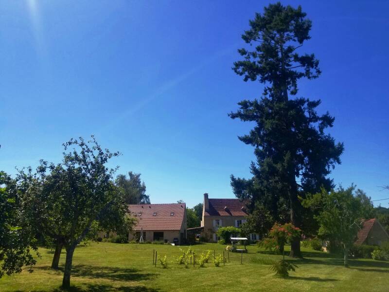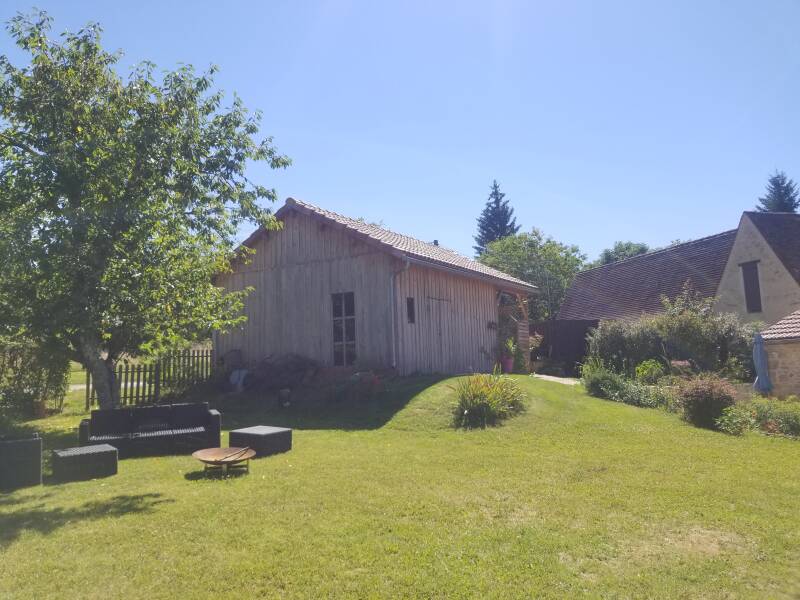 Le jardin est en deux parties équivalentes : vers l'Est, le terrain est bordé de différentes variétés de haies et il y a un puit alimenté en eau profonde de 14m, quelques arbres fruitiers et des espèces d'arbres locaux. Vers l'Ouest, le jardin compte un terrain de pétanque, la piscine de 4mX8m avec sa grande plage aménagée de 70m² (avec volet de sécurité et entourée de ganivelles) et des arbres fruitiers.